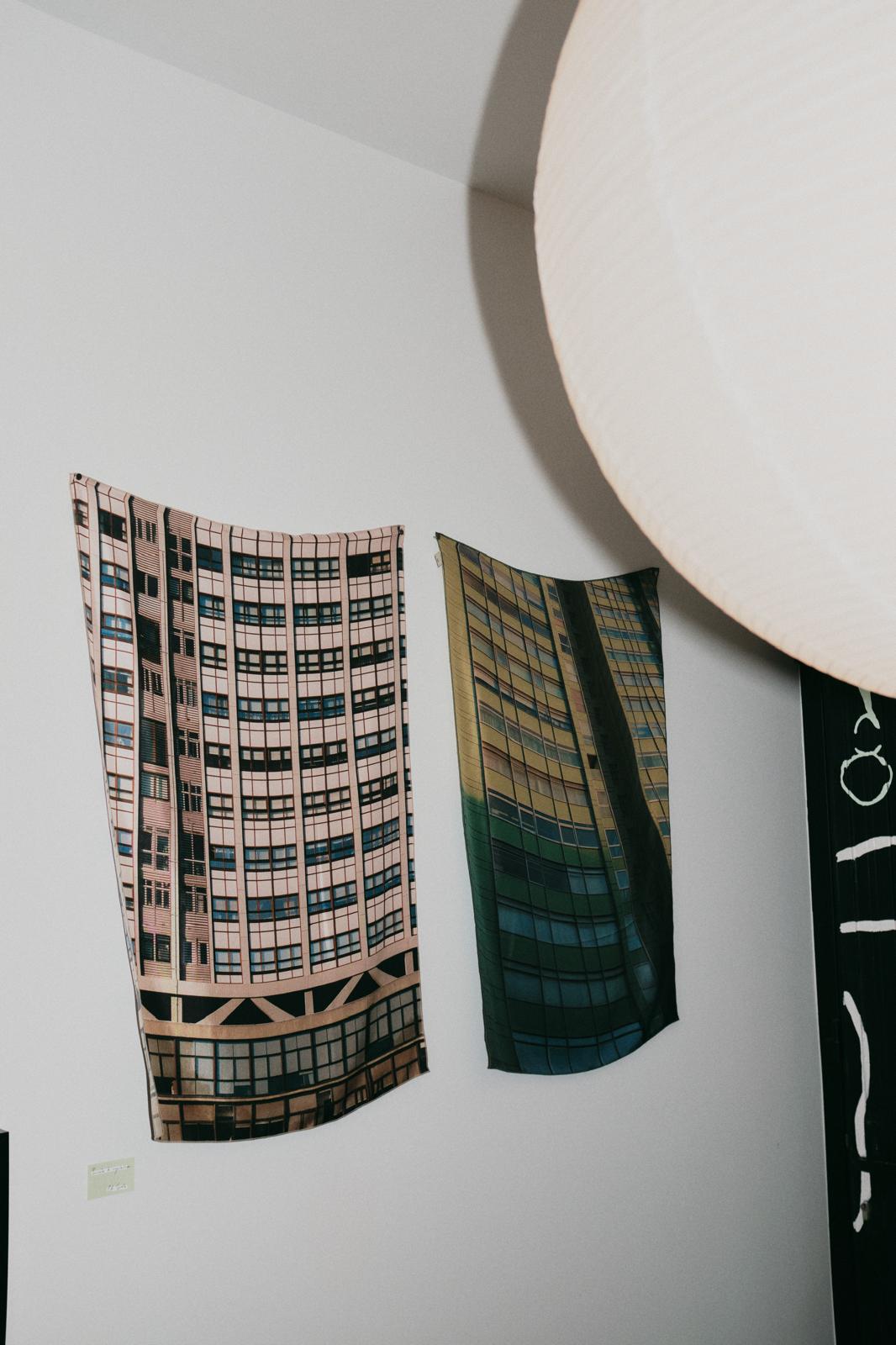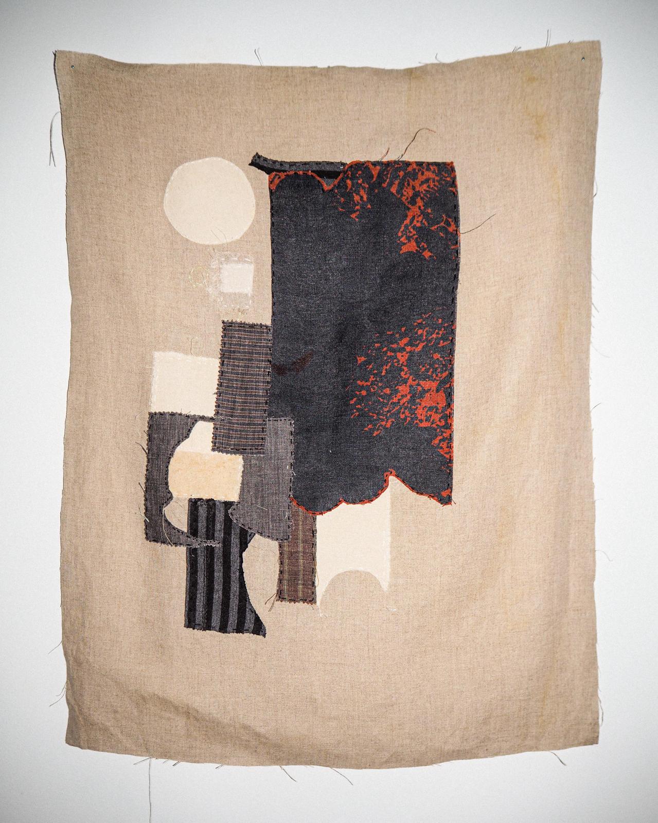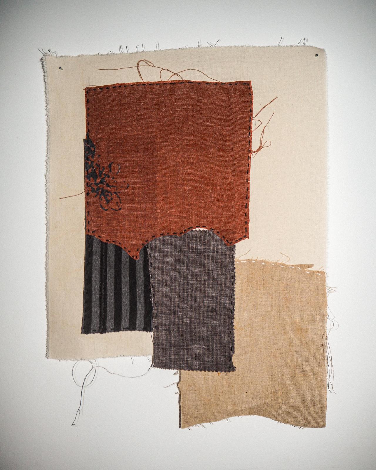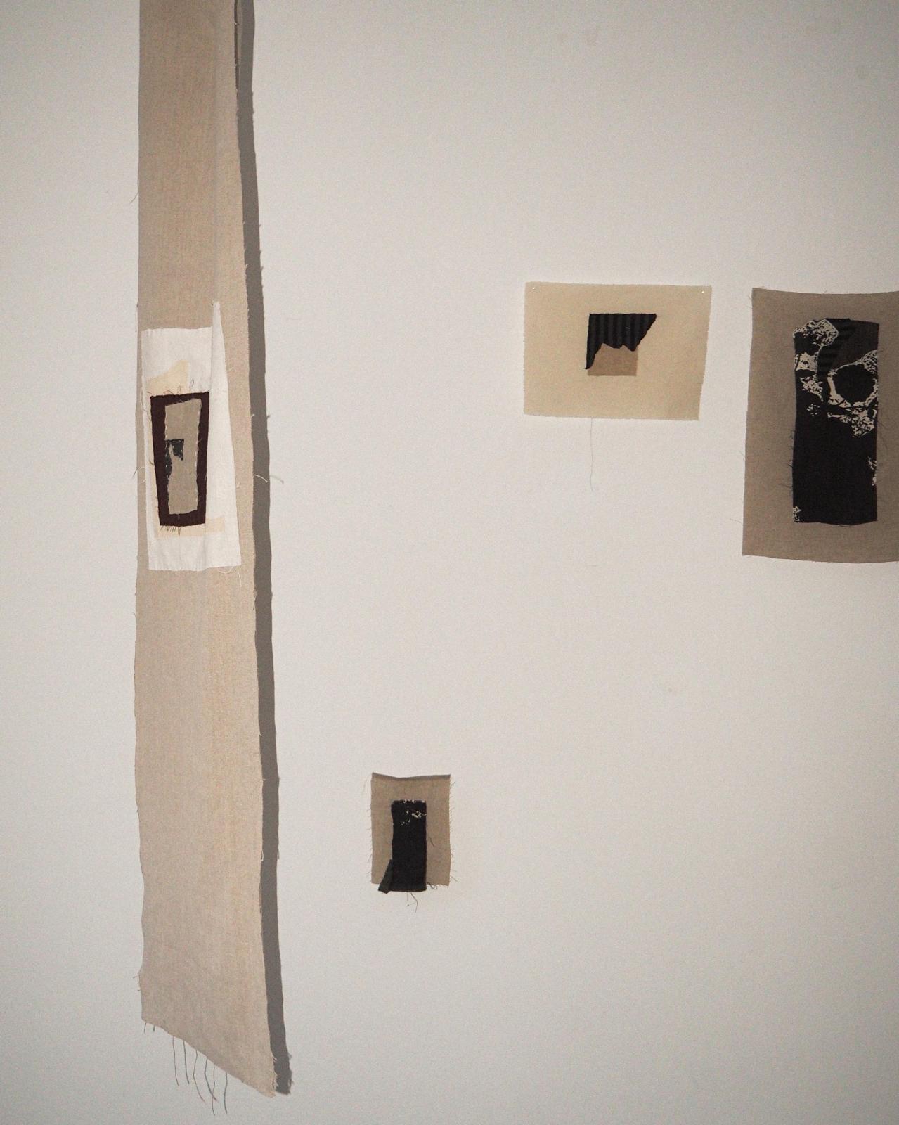 proyecto textil que recompone el espacio por pedazos, q rotos pequeños dejan ver lo que fue y construir encima, bordados y collage sobre puntadas y lisas partes de retor las piezas se han producido en el proyecto de residencias artísticas de la greleria, O Incio